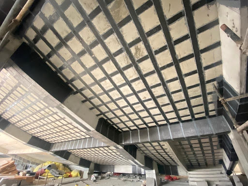 Approach: To address this issue, our team implemented a comprehensive strengthening scheme utilizing advanced Carbon Fiber Reinforced Polymer (CFRP) systems. CFRP laminates were strategically applied to enhance the flexural capacity of the slabs, while CFRP wrapping was methodically installed to increase the shear capacity of the beams. This approach effectively reinforced the structural elements, enabling them to safely accommodate the increased load demands resulting from the redesigned seating layout.